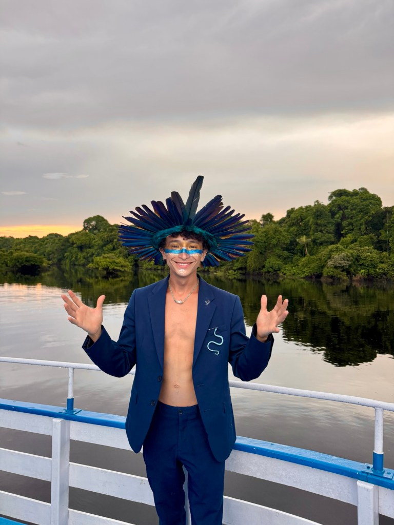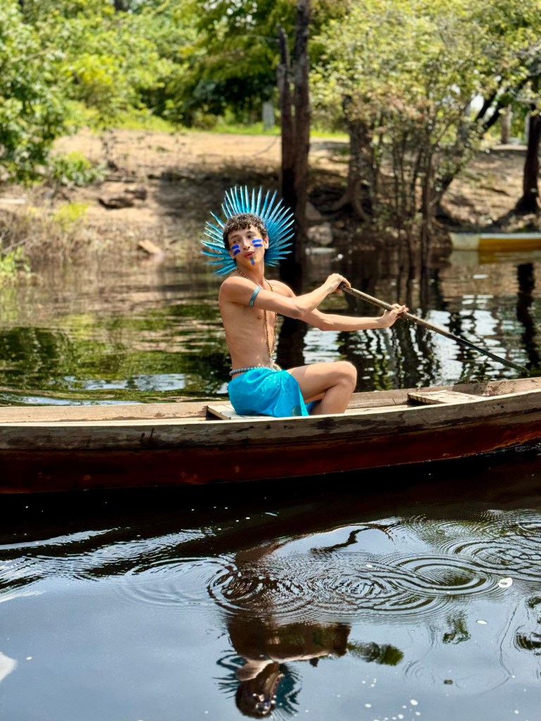 Xibé Ri Tapywara — filho da casa originária do Rio Negro — Ixé Maîrio, mãe do Rio: eu sou o espírito ribeirinho, a voz ancestral do povo Baré, que resiste e cria um futuro de beleza e força amazônica.
